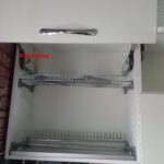 Кухня укомплектована сушкой Хром в верхнюю базу. Ручки — Boyard, подъёмный механизм Blum HF, подъёмными механизмами Boyard, Ящики — Blum TandemBox (есть скрытый ящик с замком)
