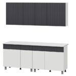 Габариты модулей, низ: ШхВхГ — 2000х824х442 мм (без столешницы) и 2000х850х600 мм (со столешницей)