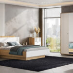 - Поперечные и продольные панели каркаса кровати из ЛДСП образуют открытую нишу под кроватью.