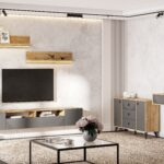 - Ручки: Фасады шкафов не имеют ручек, открывание происходит за фасад модулей;